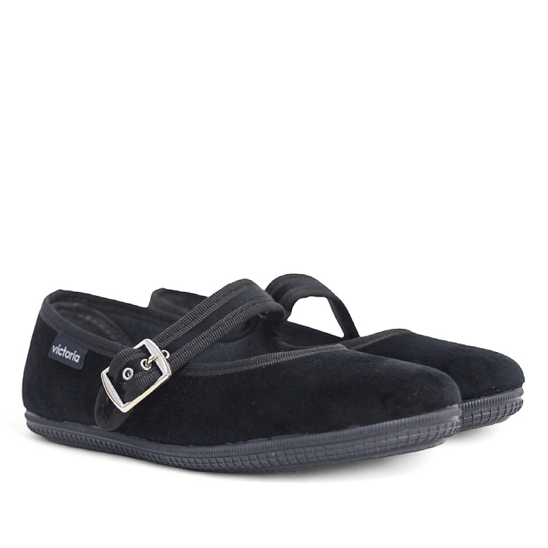Ballarines Victoria oda mercedes en vellut negre i sivella