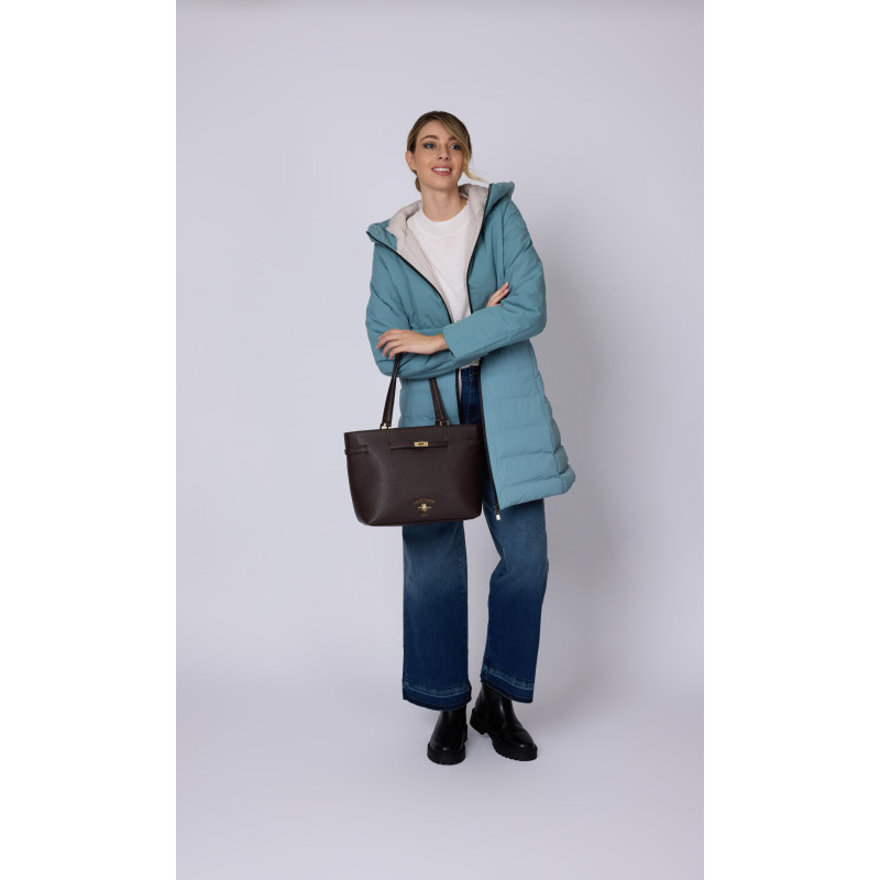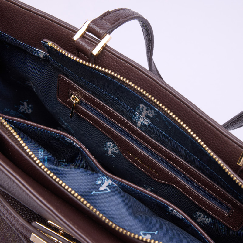 La bossa per a dona U.S. Polo ASSN model Stanford en color dark chocolate combina elegància i funcionalitat en un disseny de mida mitjana, ideal per al dia a dia. Confeccionada en pell vegana amb interior tèxtil, ofereix un acabat resistent i sostenible, mantenint un estil sofisticat i actual. Disposa d’una nansa que permet portar-la còmodament a l’espatlla, així com una corretja extra ajustable per utilitzar-la en format bandolera creuada, adaptant-se a diferents estils i necessitats. El seu espai interior pràctic la converteix en una bossa versàtil per organitzar les teves pertinences amb comoditat. Perfecta per a dones que busquen una bossa de mida mitjana en color marró xocolata, elegant, atemporal i fàcil de combinar amb qualsevol look