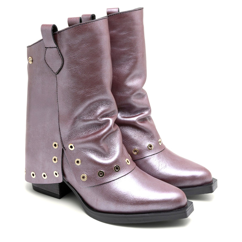 BOTAS COWBOY DE PIEL BURDEOS METALIZADO FLORENCE PORRONET