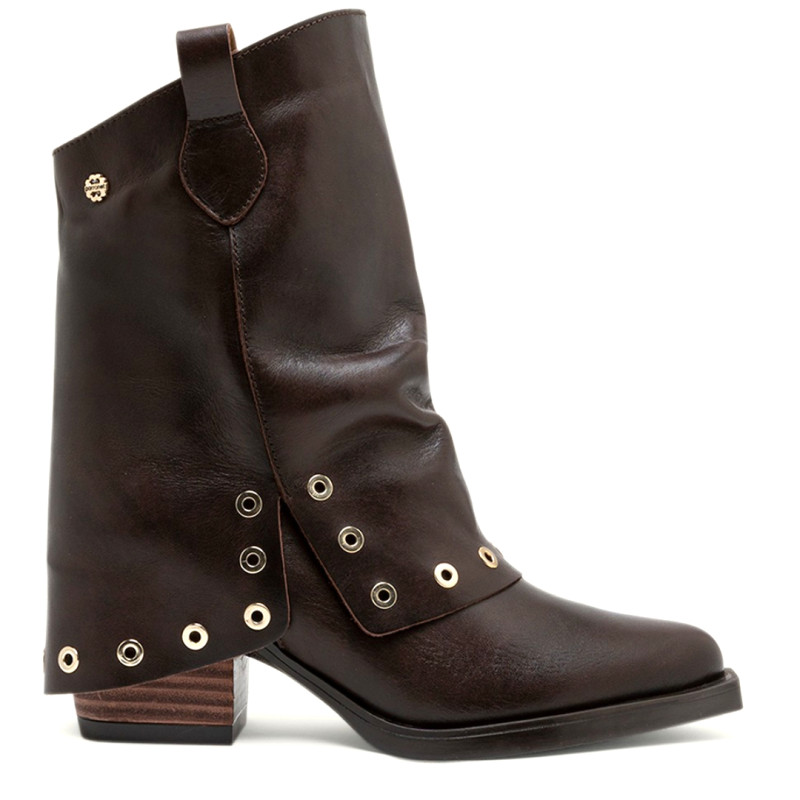 BOTAS DOBLE FAZ DE PIEL MOKA CON TACHUELAS FLAVIA PORRONET