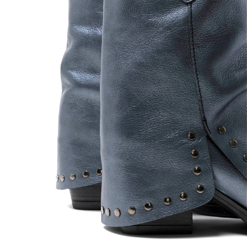 BOTAS DOBLE FAZ DE PIEL PLOMO CON TACHUELAS FAITH PORRONET