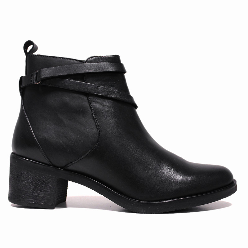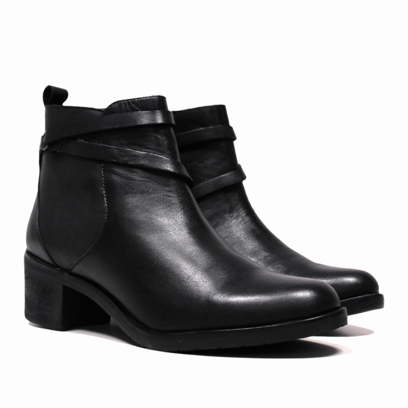 Botins de taló 48H negres amb tira creauda al tormell de pell