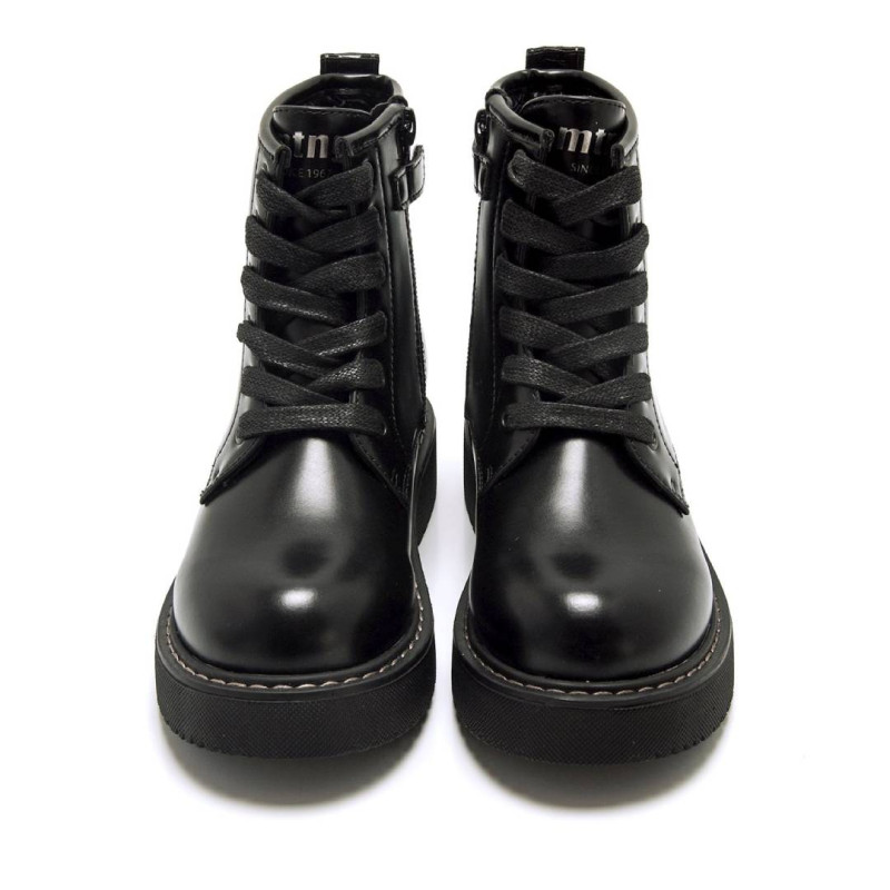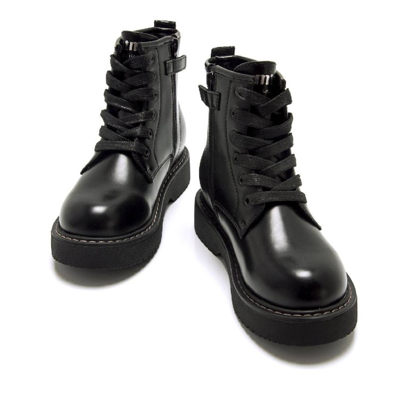 Botí per a nena de la marca Mustang model Storm High en color negre, amb disseny d’inspiració militar i canya mitjana. La seva estètica robusta i urbana el converteix en l’opció ideal per a looks informals amb personalitat. Disposa de cordons frontals i cremallera lateral per a un ajust còmode i pràctic, a més d’una nansa posterior amb el logo que hi afegeix un detall distintiu. La sola gruixuda no només aporta un toc modern, sinó que també millora l’estabilitat i reforça la comoditat a cada passa. Un calçat perfecte per a nenes que busquen resistència i estil marcat en el seu dia a dia.