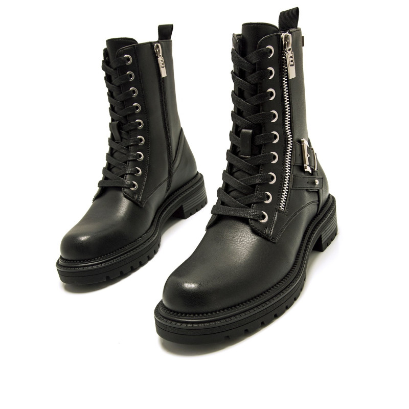 Els botins Mustang Campa per a dona en color negre combinen un disseny que fusiona l’estil biker i militar amb detalls moderns, oferint un calçat versàtil i ple de personalitat. Aquest model incorpora una cremallera lateral decorativa i una sivella metàl·lica ajustable que aporten un toc atrevit i actual, mentre que el tancament de cordons garanteix un ajust còmode i segur. La sola amb relleu proporciona tracció i estabilitat a cada pas, fent que aquests botins siguin còmodes per a l’ús diari. Ideals per combinar amb texans, pantalons o faldilles, els Mustang Campa destaquen pel seu estil urbà i funcionalitat, convertint-se en l’elecció perfecta per a qui busca un calçat resistent, modern i amb caràcter.