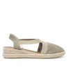Espardenya de dona en color kaki, fabricada en tèxtil amb plantilla de pell per a major confort. Elaborada artesanalment i cosida a mà a Múrcia (Espanya), compta amb jute de primera qualitat i una cuidada atenció a cada detall. La sola de goma garanteix una trepitjada còmoda i segura, perfecta per als dies d'estiu.
