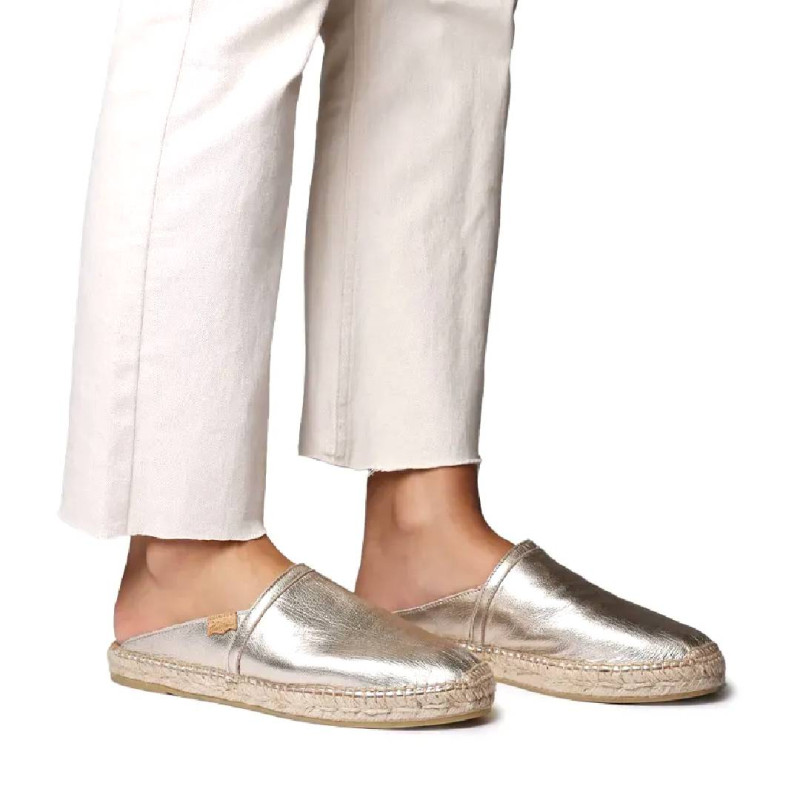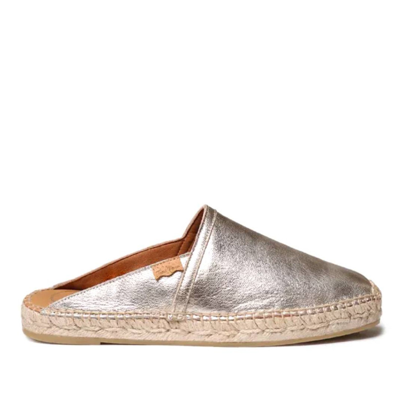 Les espardenyes DENISE-P per a dona destaquen pel seu disseny còmode i estiuenc, ideals per al dia a dia. Aquest model tipus mule destalonat estil babutxa està elaborat en pell metal·litzada, aportant un toc modern i lluminós, fàcil de combinar amb looks casuals o més arreglats. El seu disseny obert permet calçar-les fàcilment, oferint practicitat i confort durant tot el dia. El tall i la sola estan cosits a mà a Espanya, seguint processos tradicionals que garanteixen qualitat i durabilitat. La base de goma antilliscant proporciona una petjada segura i estable, mentre que la plantilla encoixinada aporta una gran comoditat a cada pas. Amb una alçada total de 2 cm, aquest model ofereix l’equilibri perfecte entre estil i confort. Aquest model calça la talla habitual; si estàs entre dues talles, es recomana escollir la més gran.