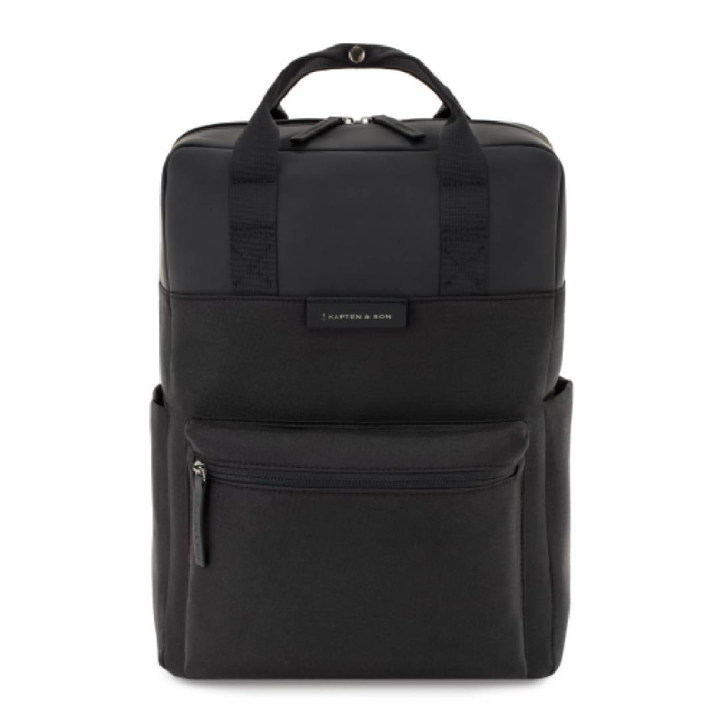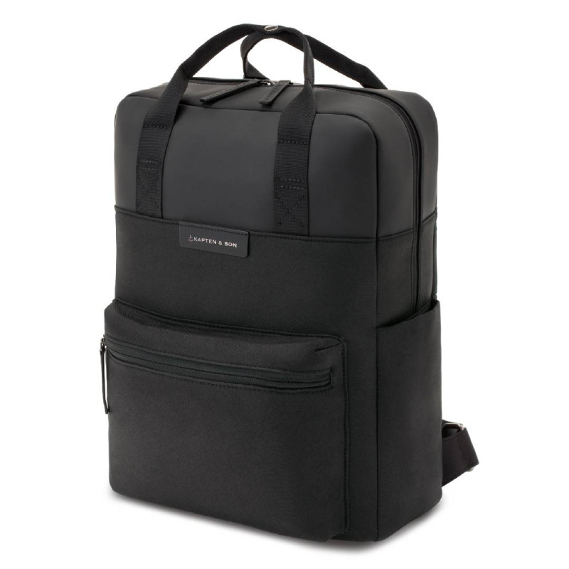 La motxilla Kapten & Son Bergen All Black combina disseny minimalista, funcionalitat i comoditat, perfecta per al dia a dia, treball o universitat. Incorpora un compartiment embuatat per a portàtils de fins a 15" (31 x 27 x 3 cm), un volum de 13 litres i un compartiment interior amb cremallera per a major seguretat. El seu disseny intel·ligent permet portar una carpeta d'anelles i disposa d'un compartiment d'accés ràpid per a l'essencial. Amb unes dimensions de 39 x 28 x 11,5 cm, és una opció versàtil i sofisticada per als qui busquen practicitat i estil en una sola motxilla.
