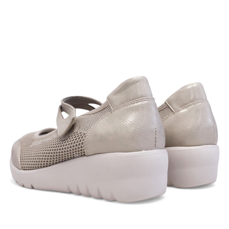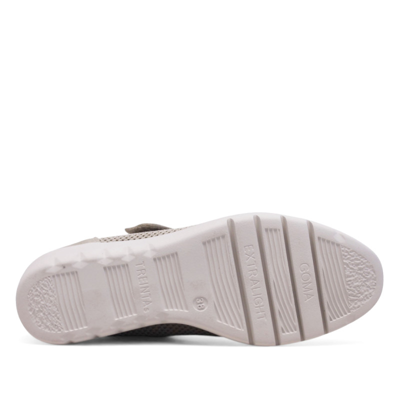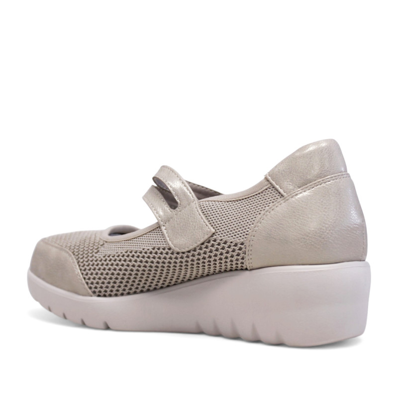 Sabates de falca Treintas beix estil mercedita amb tancament de velcro i teixit de reixeta