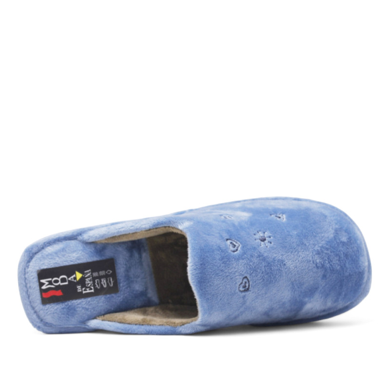 Sabatilles casa BEREVERE blaus de pelito amb dibuixos de cors i estrelles