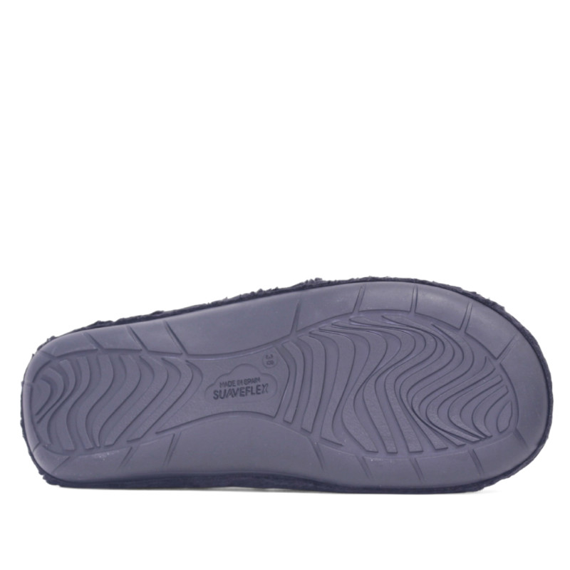 Les sabatilles per estar a casa Suaveflex per a dona en color negre combinen comoditat, estil i suavitat en un disseny modern i elegant. Fabricades en material tèxtil aterciopelat, ofereixen una sensació agradable i càlida, perfecta per al descans i el confort a casa. El detall de les lletres “CH” brodades en platejat aporta un toc sofisticat i distintiu, convertint aquestes sabatilles en un accessori còmode i a la moda. El seu disseny tancat i flexible assegura un calçat fàcil i un ajust segur, ideal per a l’ús diari a l’interior.