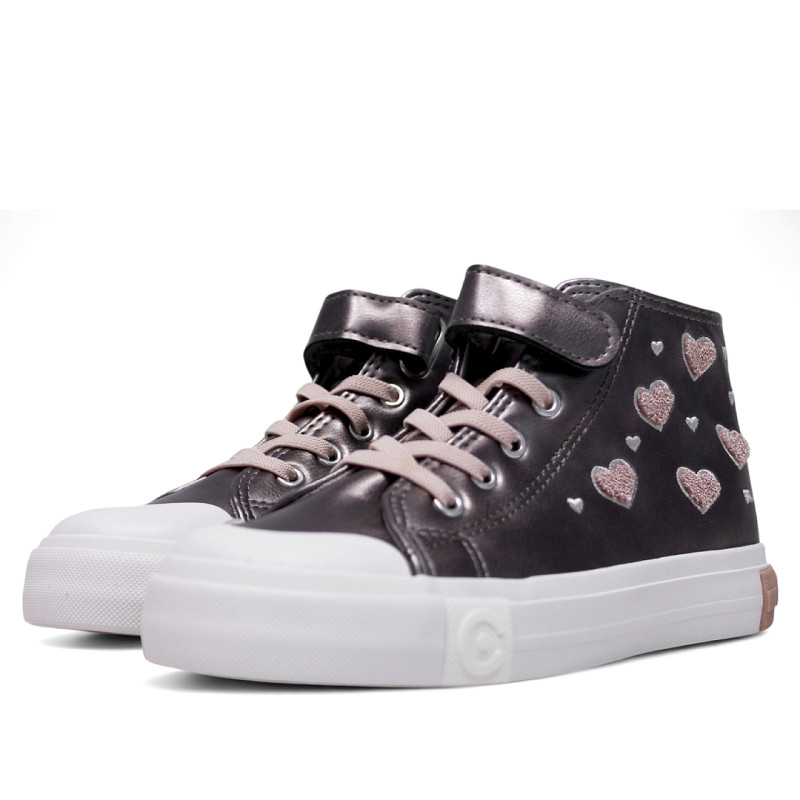 Sabatilles Conguitos platejades amb cors roses cordons elàstics i tancament amb velcro