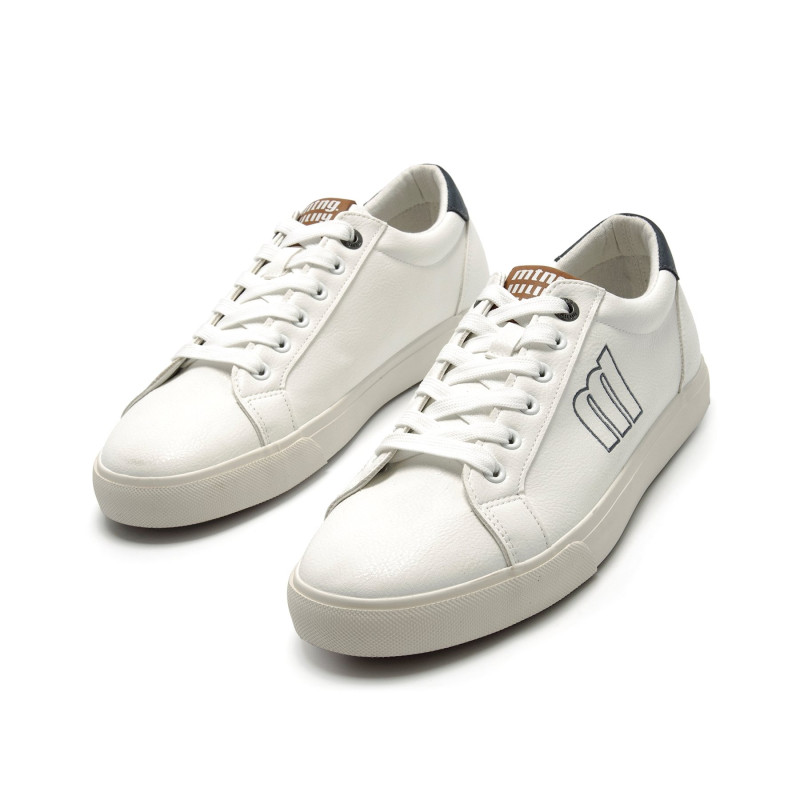 Les sabatilles blanques per a home Aria de la marca Mustang destaquen pel seu disseny minimalista i el seu estil casual, ideals per al dia a dia. Incorporen detalls en blau marí al taló i un logotip lateral perfilat que aporta un toc distintiu sense perdre la senzillesa del conjunt. La sola a joc i els traus metàl·lics reforcen la seva estètica neta i versàtil, perfecta per combinar amb looks informals i urbans. Còmodes i fàcils de portar, són una opció ideal per a qui busca un calçat discret però amb personalitat. A més, disposen de certificat VEGÀ segellat per INESCOP, que garanteix que els materials no contenen fibres d’origen animal.