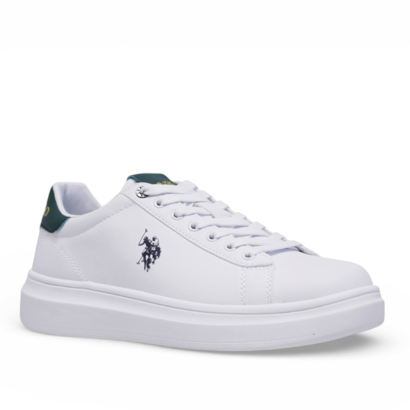 Descobreix les sabatilles esportives US Polo Cody per a home, un clàssic atemporal que combina estil i comoditat a cada pas. Confeccionades en pell vegana, són respectuoses amb el medi ambient i ofereixen un acabat durador i elegant. El seu disseny en blanc amb panell posterior i llengüeta en verd fosc aporta un toc distintiu i sofisticat, perfecte per a looks casuals, urbans o esportius. La sola resistent garanteix estabilitat i un bon agarri, convertint les US Polo Cody en l’elecció ideal per al dia a dia o qualsevol ocasió informal. Un calçat versàtil que combina tradició, confort i estil en un sol model