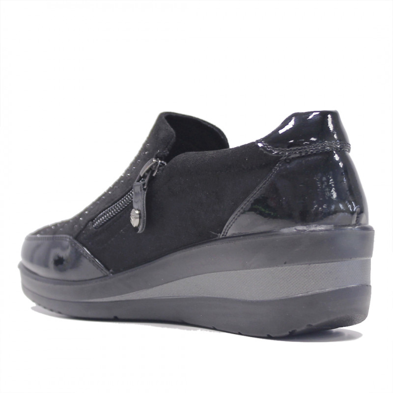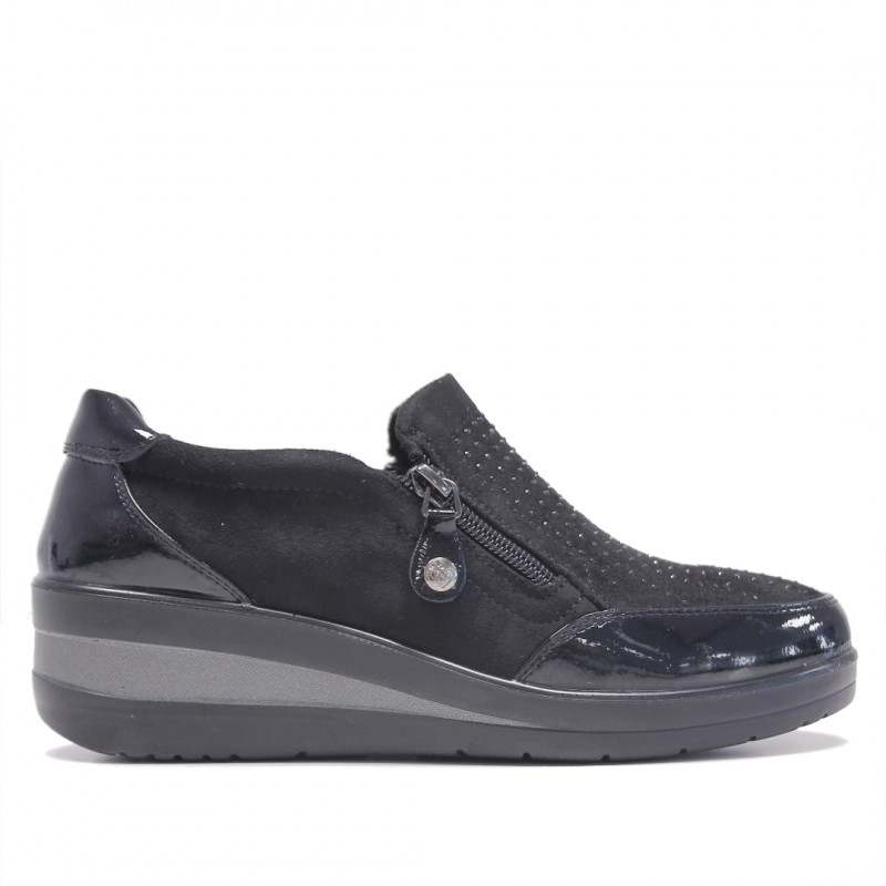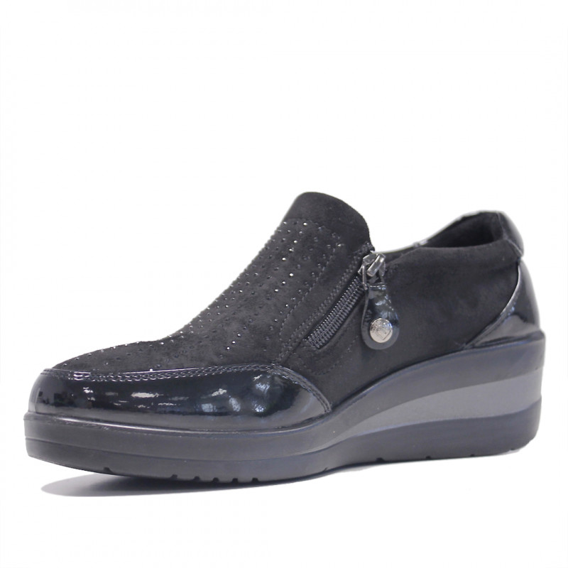 Sabatilles falca Amarpies negres amb pedres i cremallera lateral