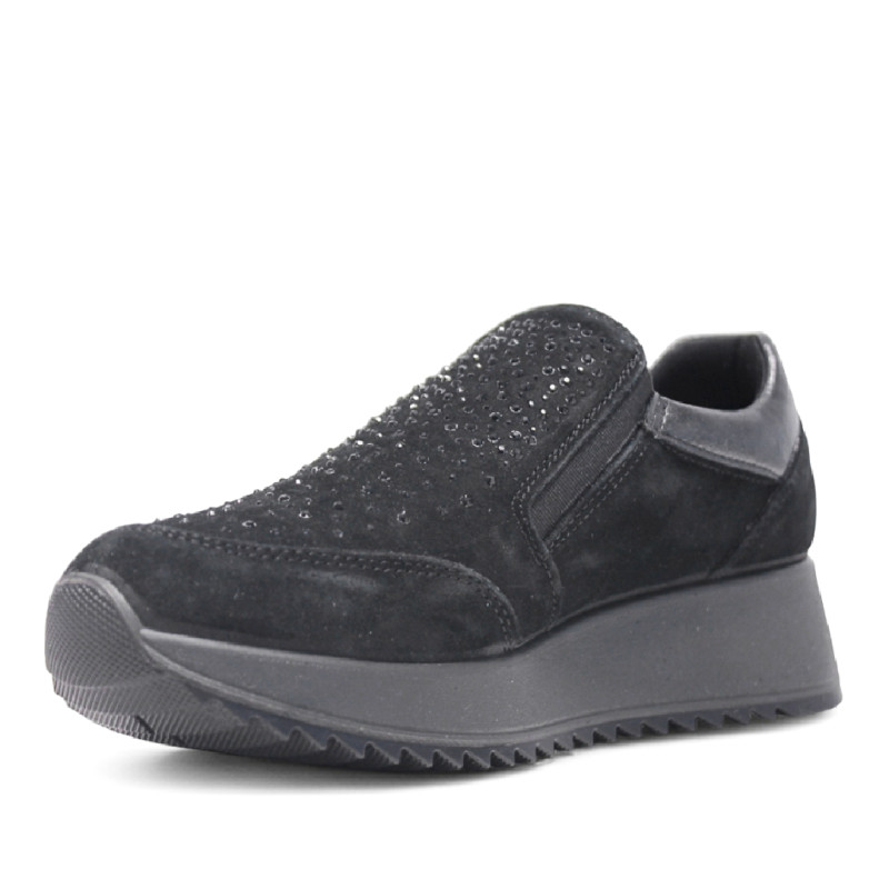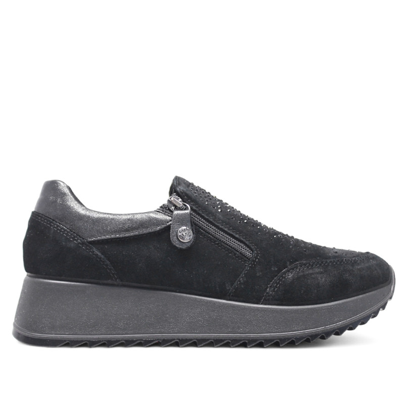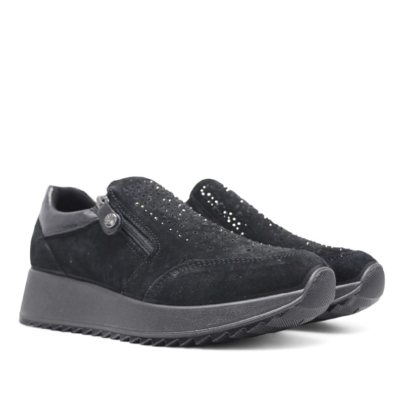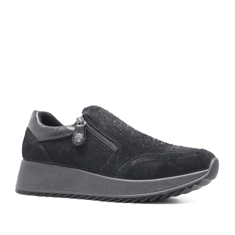 Sabatilles urban Imac negres de camussa amb brillants en l'empenya i cremallera lateral