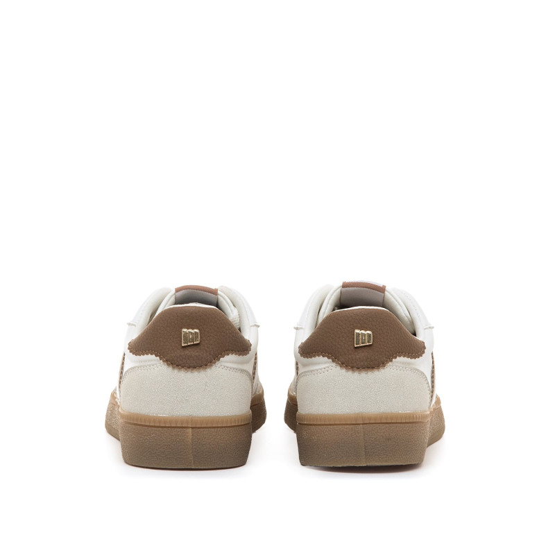 Les sabatilles Mustang Roy per a dona combinen estil retro i versatilitat en color blanc amb detalls beix i marró. El seu disseny incorpora contrast al taló i bandes laterals, aportant un toc clàssic renovat. La sola de goma en color caramel ofereix un acabat elegant i resistent, mentre que el logotip lateral brodat reforça la seva identitat. Inspirades en el calçat esportiu vintage, aquestes sabatilles són perfectes per a looks relaxats amb un toc actual, combinant confort, estil i funcionalitat. A més, disposen de certificat VEGÀ segellat per INESCOP, que garanteix que els materials no contenen fibres d’origen animal.