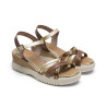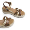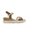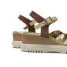 SANDALIA DE CUÑA DE PIEL DE TIRAS MOKA ORO BERTA PORRONET