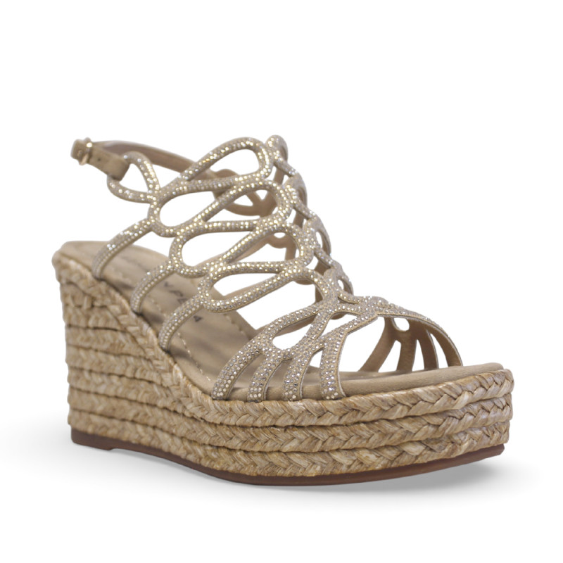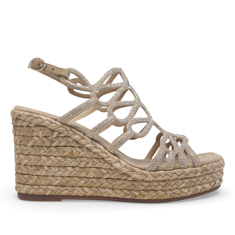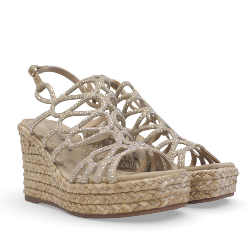 Sandàlies falca Alma en pena marró clar amb brillants i forma a l'empenya