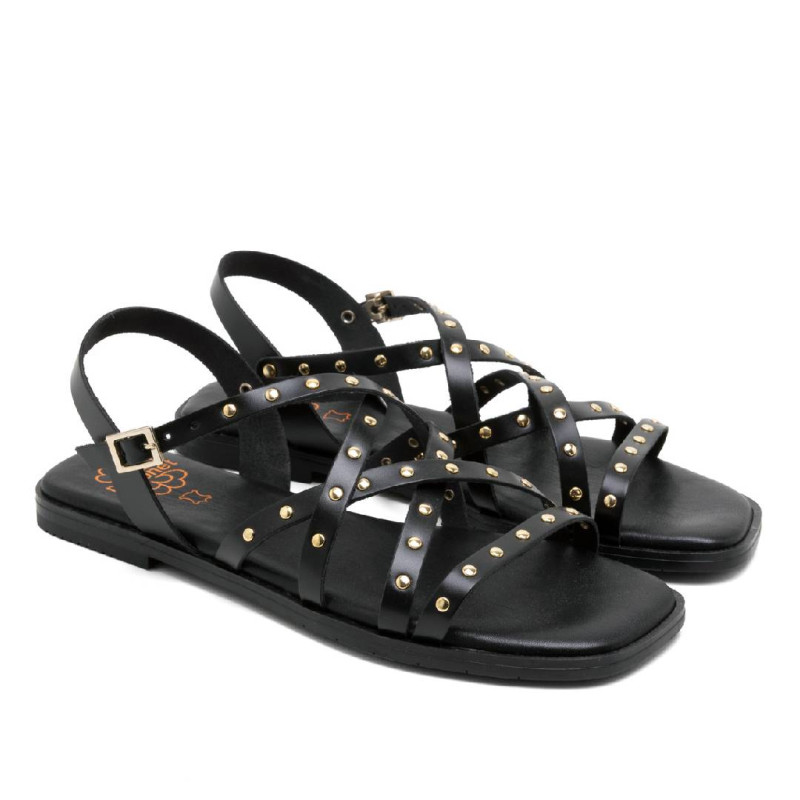 Sandàlies planes Porronet blair negres amb tires creuades amb tatxes de pell