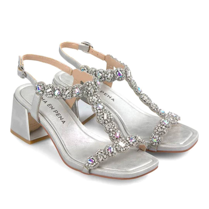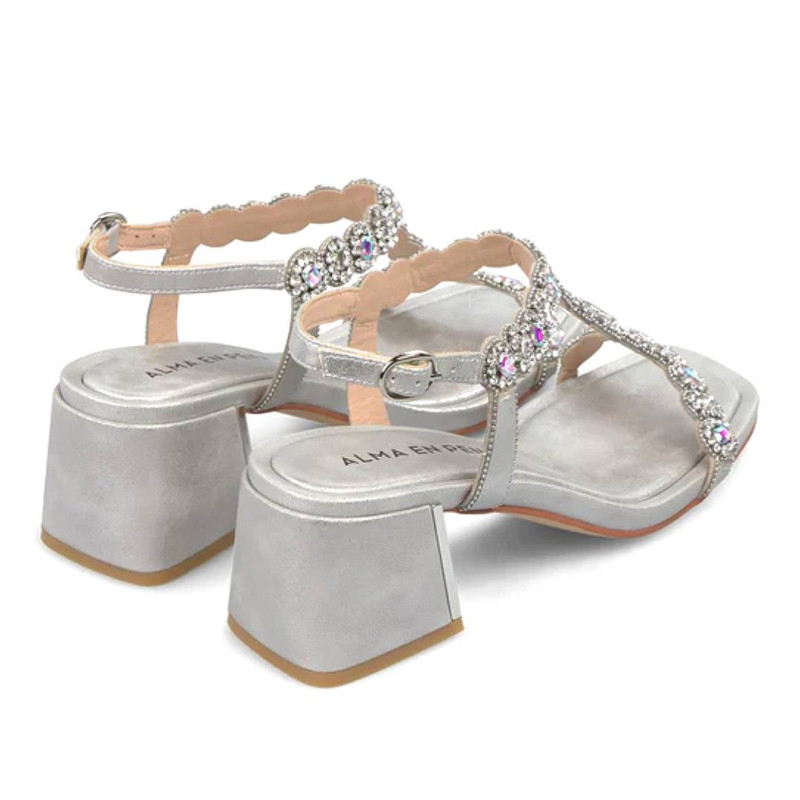 Sandàlies taló Alma en pena platejades am tira amb dorma de t amb pedreria