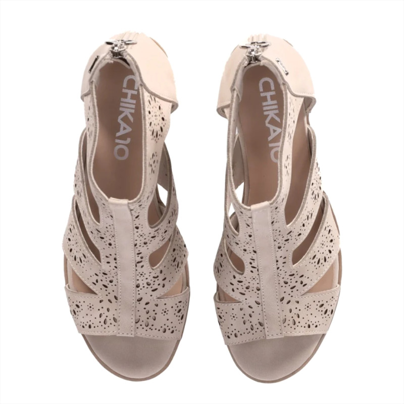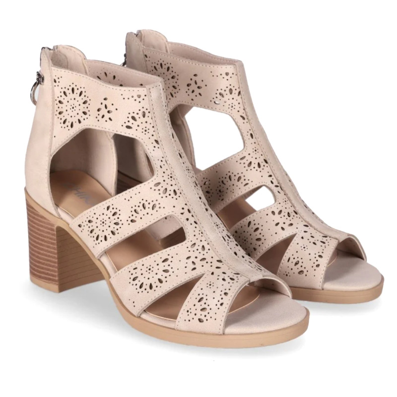 Les sandàlies de dona Chika10 model Rosalinda 07 en color beige combinen elegància i comoditat en un disseny perfecte per al dia a dia o per a ocasions especials. El seu taló mitjà ofereix alçada sense renunciar al confort, mentre que el disseny troquelat floral aporta un toc femení i sofisticat. Incorporen tresos amples que proporcionen més subjecció i estabilitat, juntament amb tancament de cremallera posterior, que facilita el calçat i assegura un ajust còmode. Un model versàtil, ideal per combinar amb looks d’estiu, vestits o conjunts casual elegants.