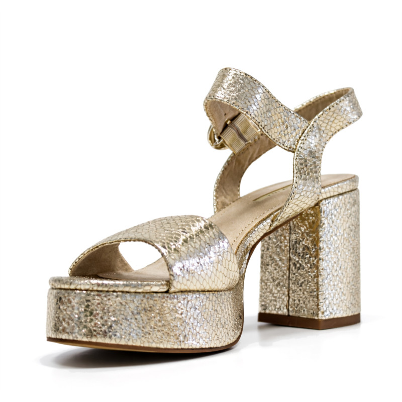Sandàlies taló Querol daurades efecte metal·litzat amb textura de serp