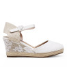 Alpargatas cuña Mandarina laura blancas con bordado de encaje en la cuña