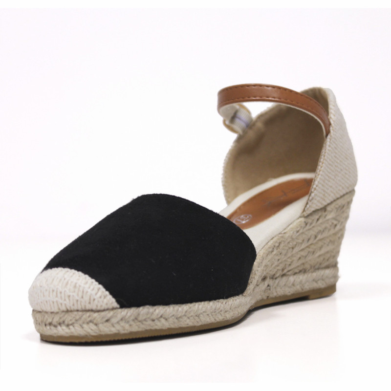 Alpargatas cuña Querol negras con puntera de punto cogidas al tobillo