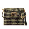 Bolso tipo bandolera para mujer de Mariamare modelo Sele de color negro, con un diseño estructurado en tejido de cuadros que combina tonos dorados y negros para un efecto visual llamativo. La solapa con cierre magnético incluye el logo metálico enmar