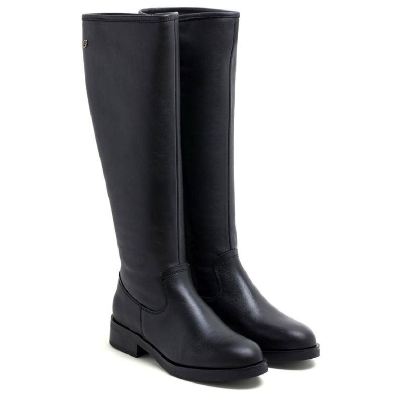 Bota alta con corte de piel y apertura lateral con cremallera. Plantilla y forro de microfibra con acabado confort y altura de tacón de 3,5 cm. Piso antideslizante y flexible. Elaborado 100% de manera artesanal en España.