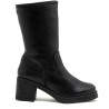 Botas de piel con tacón de 6,5 cm y plataforma de 2,5 cm con detalle de correa y hebilla. Corte superior en V y apertura lateral con cremallera interior para facilitar el calce. Plantilla y forro de microfibra con acabado confort aterciopelado. Piso antid