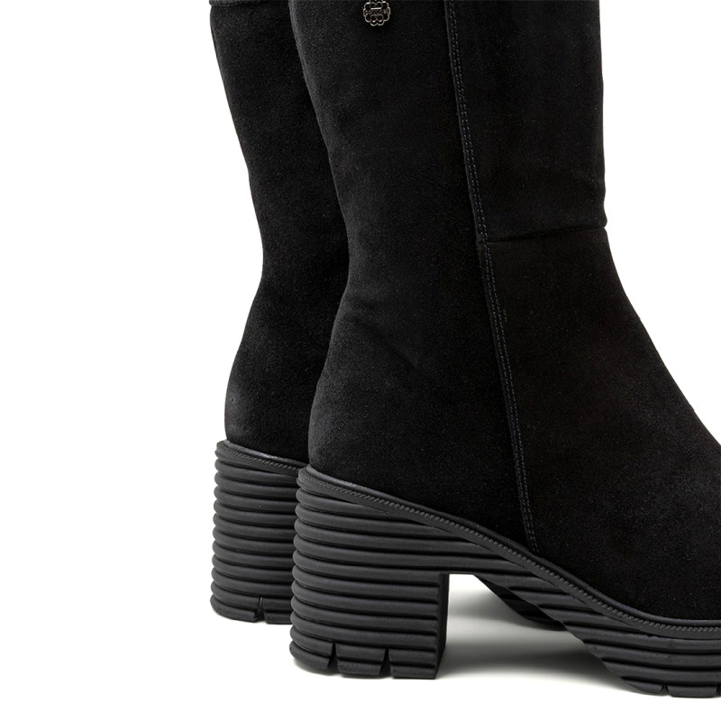 Botas de piel con tacón de 7 cm y plataforma de 2,5 cm. Cierre interior mediante cremallera y corte de piel de calidad para la transpiración del pie. Plantilla y forro de microfibra con acabado confort. Piso antideslizante y flexible. Elaborado 100% en Es