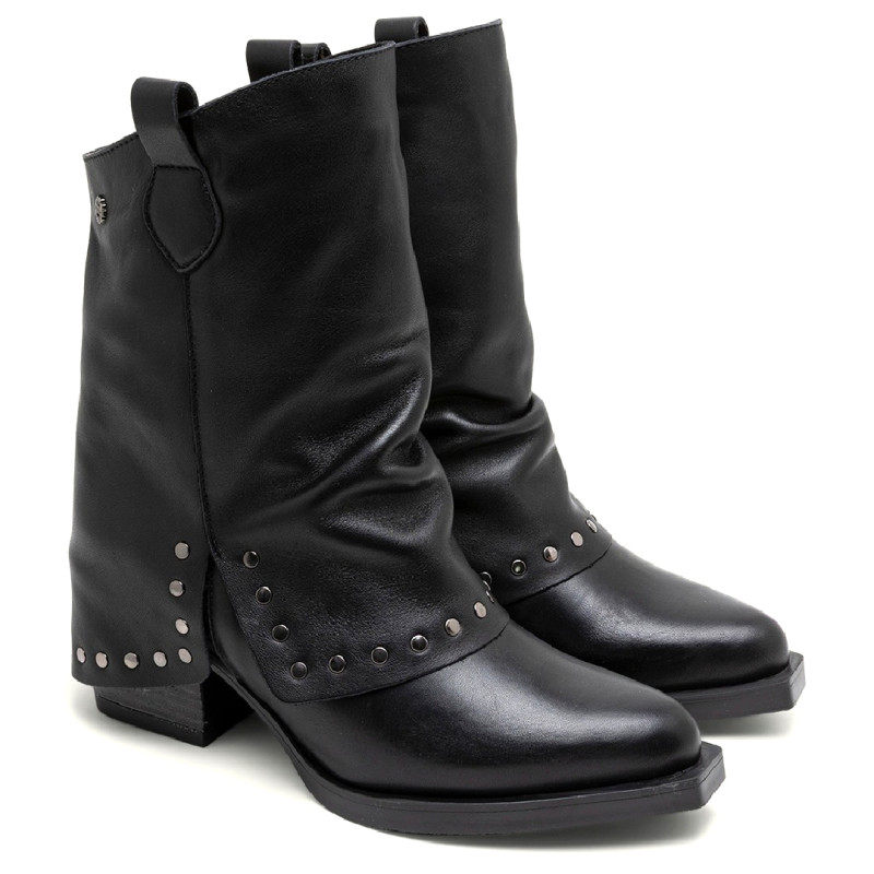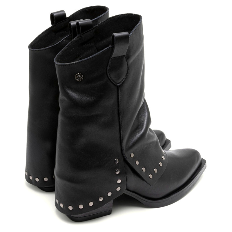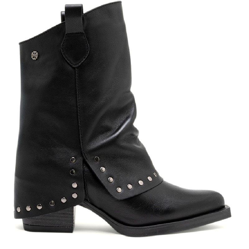 BOTAS DOBLE FAZ DE PIEL NEGRO CON TACHUELAS FIORELLA PORRONET