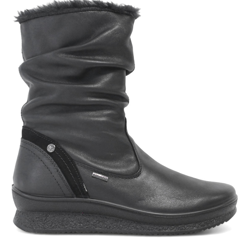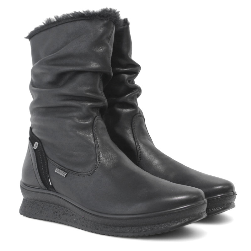 Botas planas Imac negras de piel con la caña arrugada y pelito en el interior