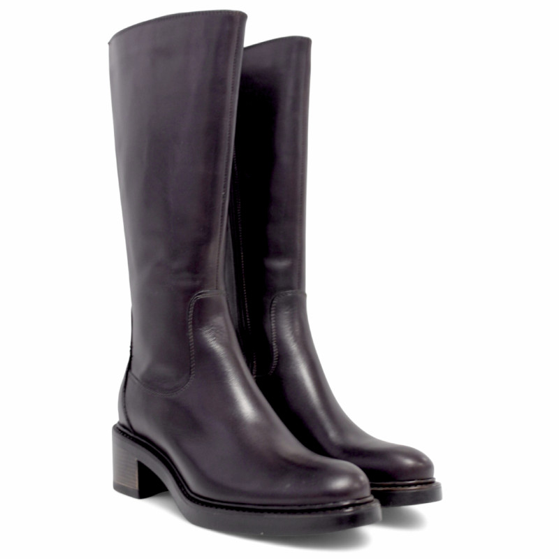 Botas tacón marrones de piel de corte clásico con cremallera lateral