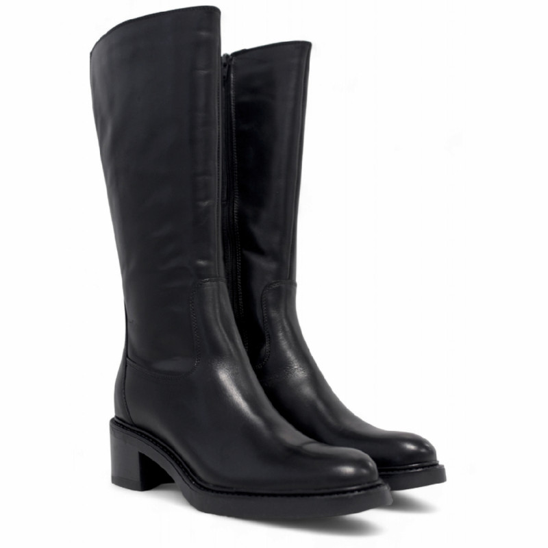 Botas tacón negras de piel de corte clásico con cremallera lateral