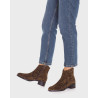 Botines BONJOUR 01 fabricados en piel ante marrón con estampado de zebra. Su estética limpia y atemporal lo convierte en un básico imprescindible para cualquier fondo de armario. De caña baja y punta redonda. Su cierre mediante cremallera lateral facilita