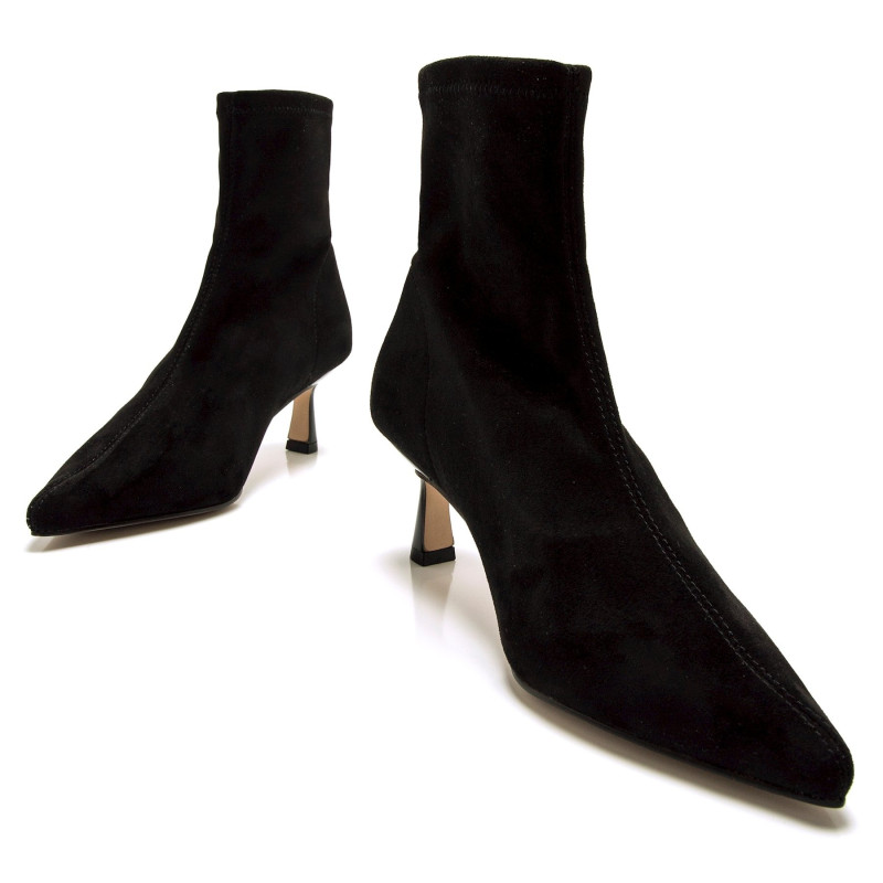 Botín negro de Mtng para mujer, modelo Ninette con diseño stretch que se ajusta al tobillo para un efecto estilizado. Incorpora tacón fino medio y puntera afilada, ideal para todo tipo de looks con un toque refinado. Su caña flexible proporciona un a