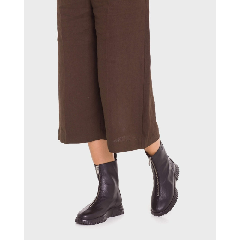 Botines FLEXFLY 03 fabricados en piel texturizada color negro. Con diseño moderno y actual, con detalle de cremallera metálica en la zona central de la caña. Destaca el logo grabado en el lateral exterior, y el tirador trasero que junto a la cremallera of