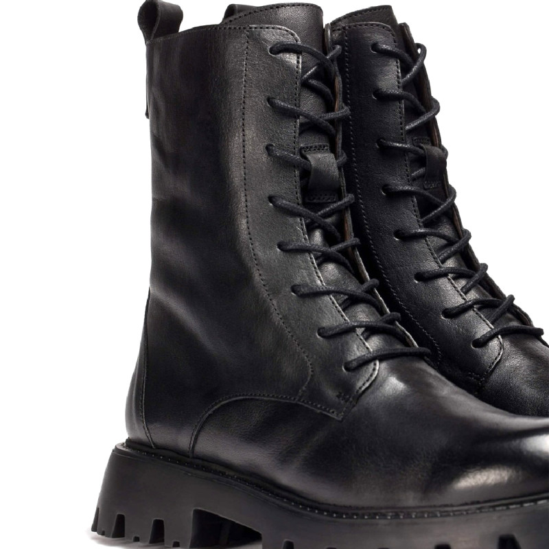 Botines GOODFLY 10 confeccionados en piel color negro. Este modelo presenta un concepto urbano y moderno, con un cierre acordonado y una práctica cremallera lateral para un fácil ajuste.Su suela track desarrollada con la tecnología WondersFly ™, garantiza