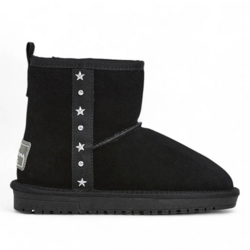 Botines para niña de la marca Pepe Jeans, modelo Diss Rock en color negro, de estilo australianas, que combinan diseño moderno y comodidad para los más pequeños. Este calzado destaca por su tira lateral decorada con tachuelas en forma de estrella, que aporta un toque divertido y original al look. Fabricados en ante de alta calidad, los botines ofrecen durabilidad, resistencia y un ajuste seguro. Su suela resistente y antideslizante garantiza estabilidad y confort en cada paso, haciendo de los Diss Rock la opción perfecta para el día a día, actividades escolares o paseos urbanos.