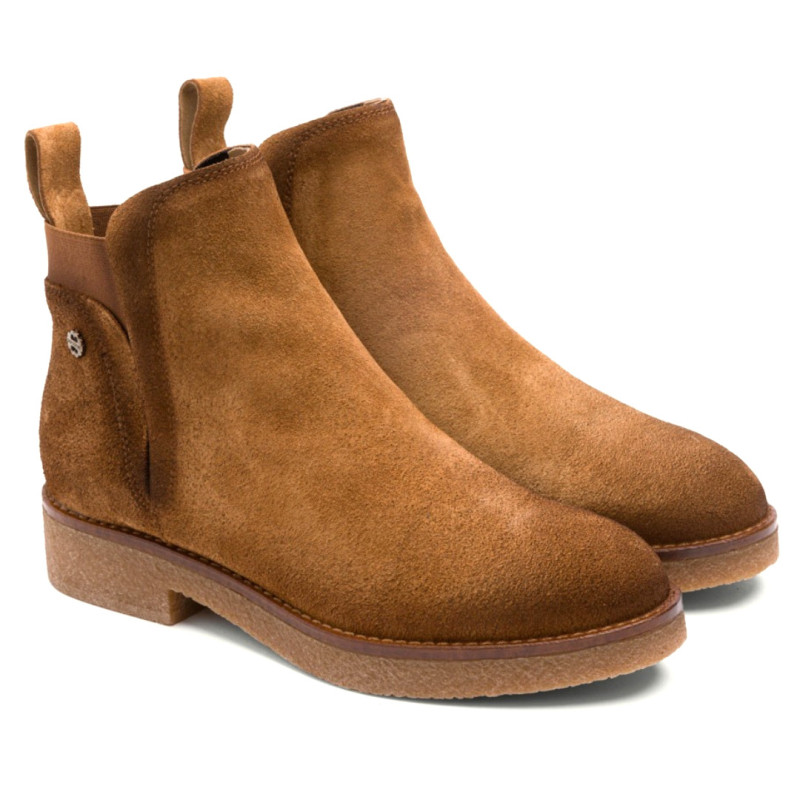 Los botines Anna de Porronet reflejan el equilibrio perfecto entre diseño artesanal, comodidad y estilo natural. Fabricados en serraje de piel con suela de crepé natural, destacan por su tacto suave, su durabilidad y su estética genuina. El color cuero aporta calidez y versatilidad, mientras que los elásticos laterales facilitan el calce y aportan un toque casual y elegante a la vez. Con una altura de tacón de 3,5 cm, ofrecen confort durante todo el día gracias a su plantilla de microfibra aterciopelada y a su cuidadosa confección artesanal. Un modelo 100% hecho en España, ideal para acompañar cualquier look de temporada con estilo y autenticidad.