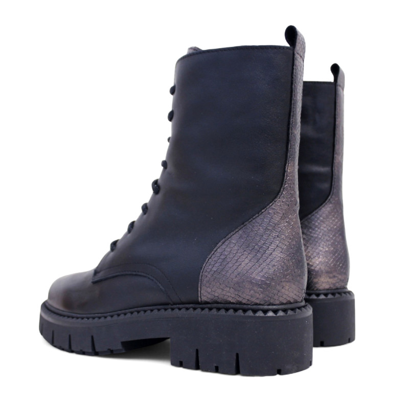 Botines planos Redlove macarena negros con panel efecto serpiente de piel