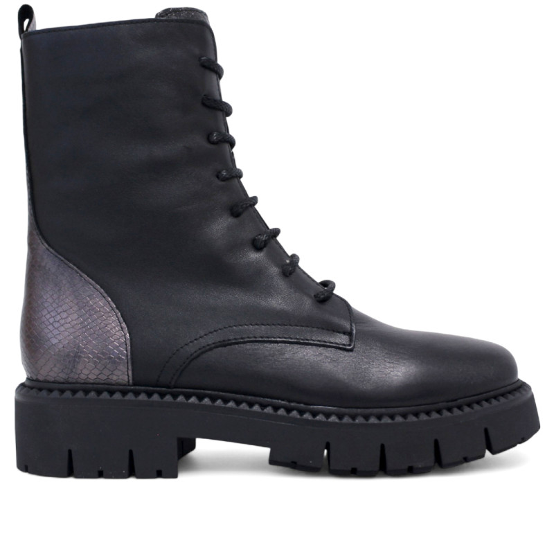 Los botines planos para mujer Redlove Macarena en color negro combinan estilo, comodidad y originalidad en un diseño moderno y versátil. Destacan por su panel trasero efecto serpiente en color metalizado, que aporta un toque sofisticado y distintivo al calzado. Fabricados íntegramente en piel de alta calidad, estos botines ofrecen durabilidad y confort durante todo el día. Su cierre con cordones y cremallera lateral permite un ajuste perfecto y facilita el calce, convirtiéndolos en una opción práctica y estilosa. Ideales para looks casuales o urbanos, los Redlove Macarena se pueden combinar con jeans, pantalones ajustados o faldas, aportando personalidad y elegancia a cualquier outfit. Su diseño cuidado y contemporáneo los convierte en un básico imprescindible en el armario femenino.