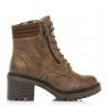Botines tacón Mustang con suela tipo track en color marrón, tiene cierre con cordones y cremaller