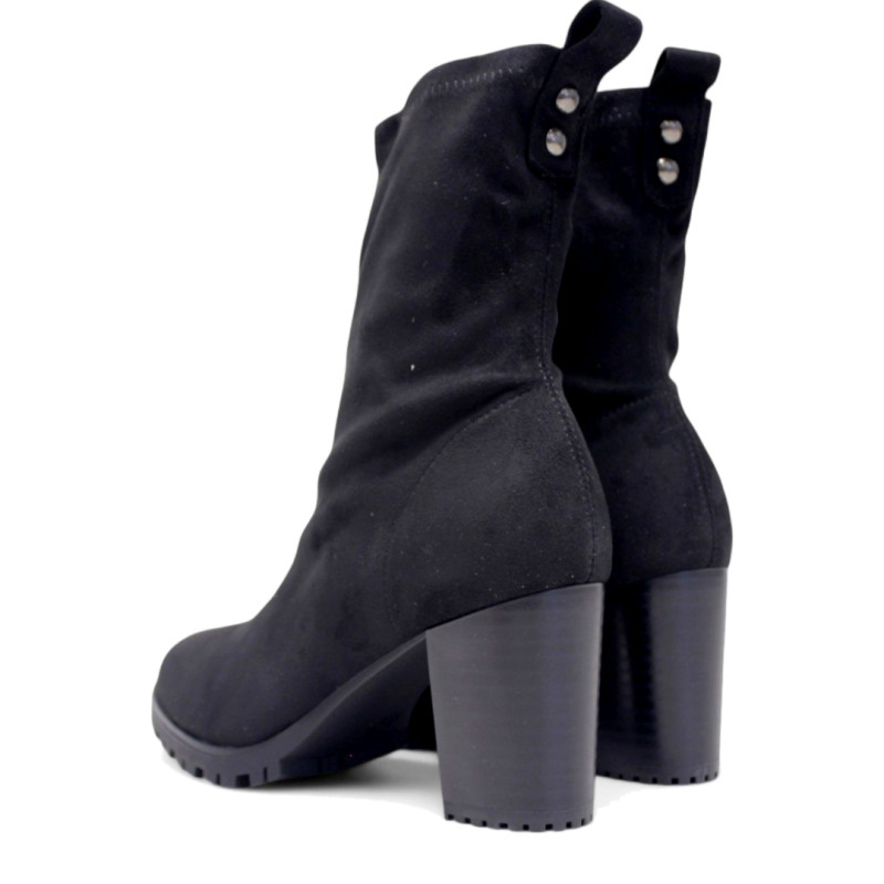 Botines tacón Querol estilo calcetín en negro con tirador trasero