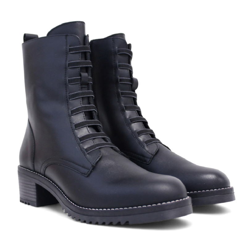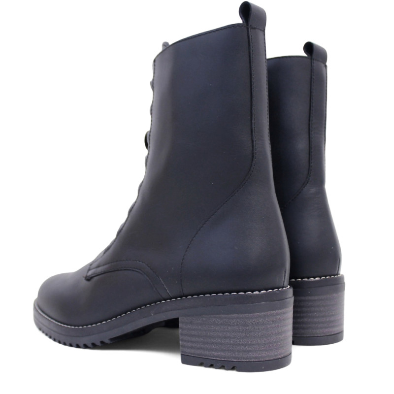 Botines tacón Redlove celestina negros con cordones elásticos y cremallera de piel