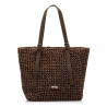 Bolso shopper de color marrón moka para mujer de la marca Mtng, modelo Humo de estilo natural. Está elaborado en rafia de papel trenzada, con asas largas de efecto piel ajustables mediante hebillas, que permiten un cómodo uso al hombro. Su diseño amp