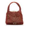 Bolso de mujer modelo Nevia de la marca Mtng, diseñado en algodón de color coral con un tejido tipo red que combina modernidad y frescura. Este bolso destaca por su doble funcionalidad gracias a sus dos asas: una integrada en el propio tejido para ll