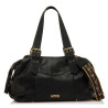 Bolso bowling negro de mujer, modelo Sanny de mtng. Sus asas con hebillas doradas y correa bandolera bordada con motivos florales, convierten este diseño en funcional y estiloso a partes iguales. Su silueta redondeada incluye detalles de textura en l